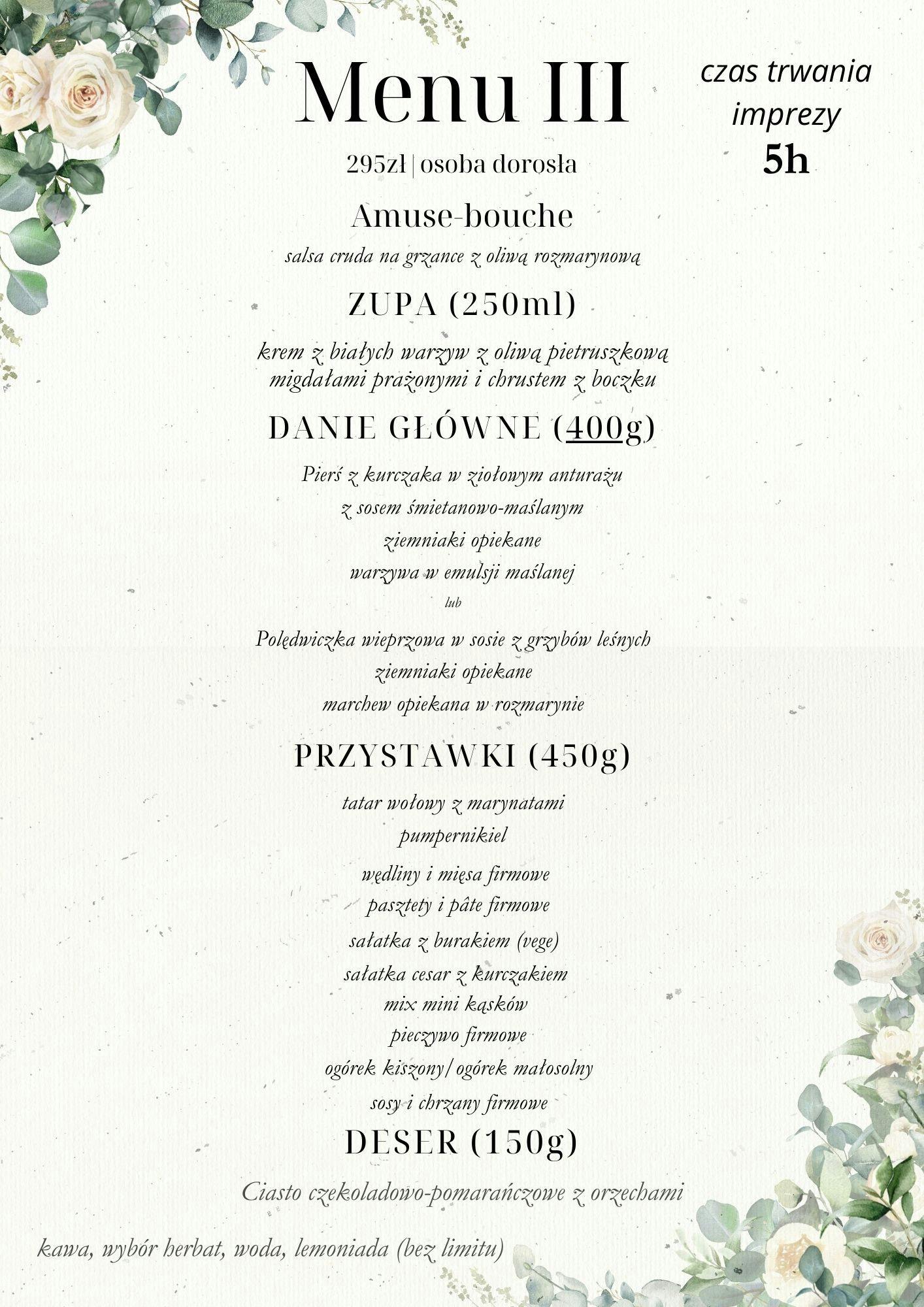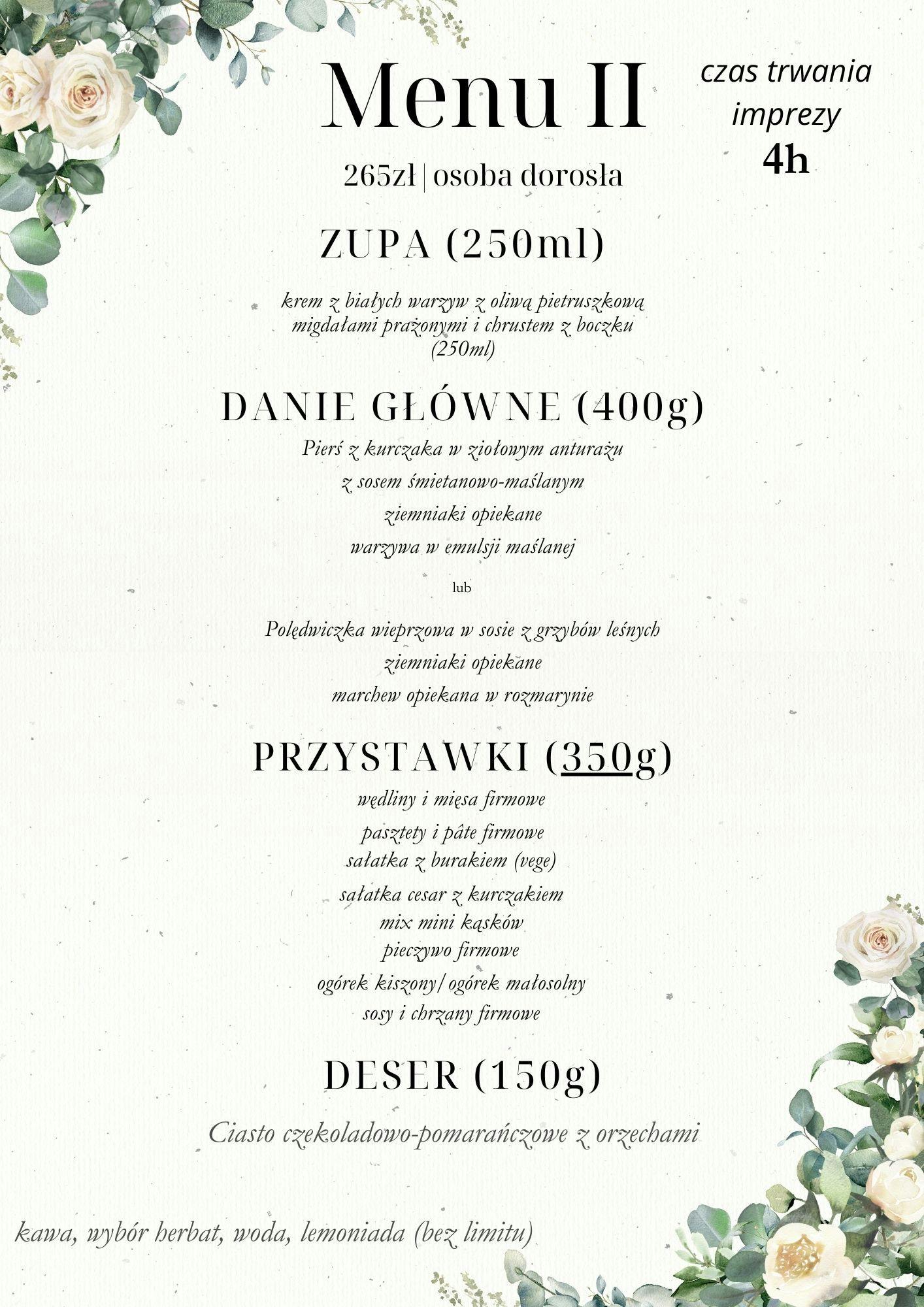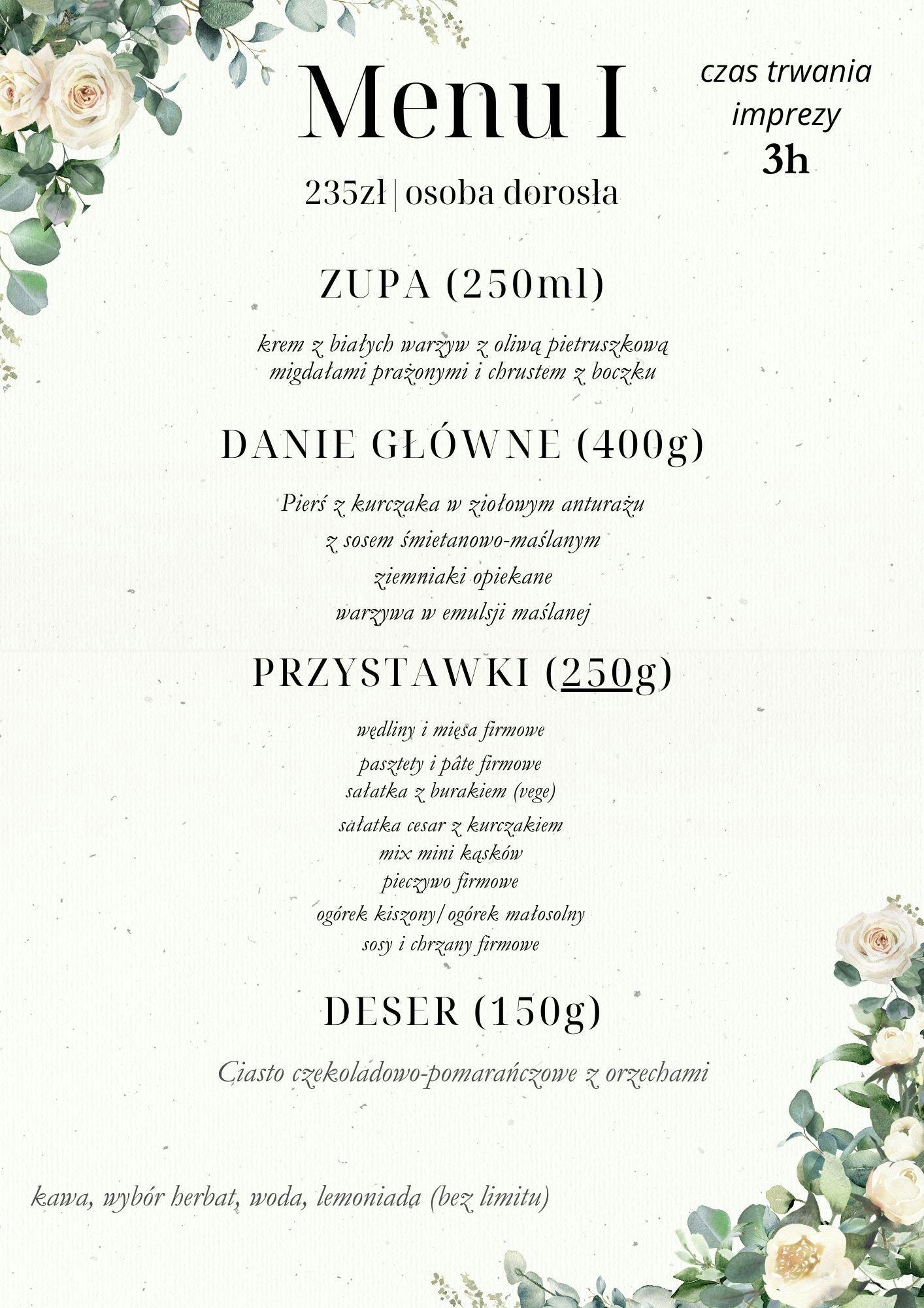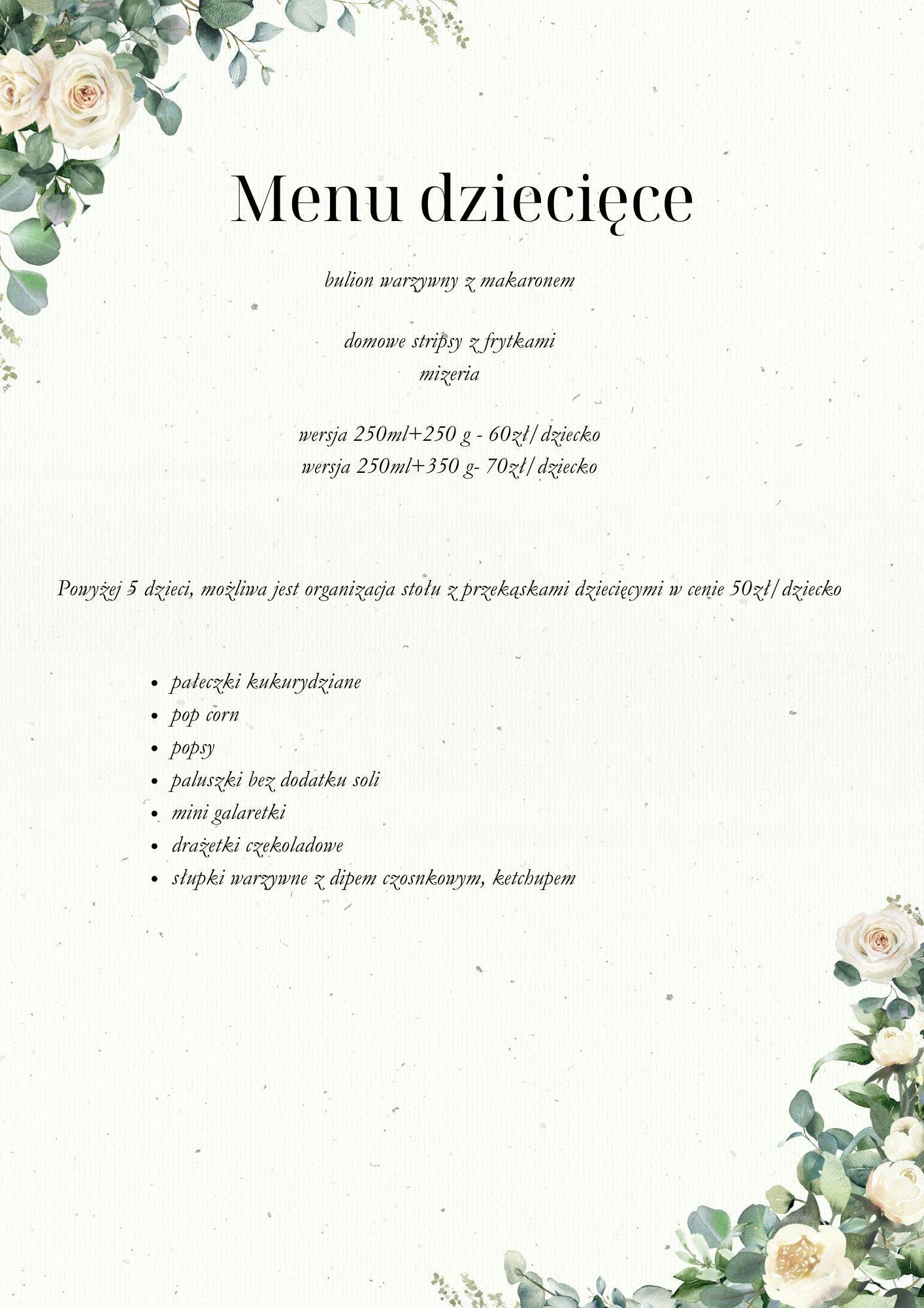 Menu może być modyfikowane — uwzględniamy preferencje dzieci oraz potrzeby dietetyczne gości.